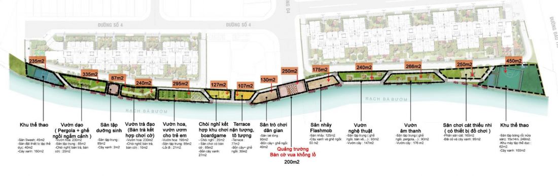 Theo đại diện chủ đầu tư, các không gian dành cho trẻ em được ưu tiên những vị trí đẹp với tầm nhìn ra cảnh quan xanh, bờ sông, thoáng khí trời. Do quy hoạch đồng bộ ngay từ khi dự án còn trên thiết kế, các tiện ích này đặt sát cạnh, tạo kết nối liên hoàn, tạo ra trải nghiệm tiện lợi tối đa cho cư dân trong việc theo dõi con trẻ vui chơi, học tập.