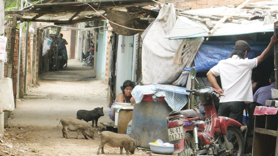 Dự án khu dân cư - trung tâm thương mại - cao ốc văn phòng tại phường 13 - quận Bình Thạnh do Công ty TNHH MTV Đầu tư xây dựng Tân Thuận làm chủ đầu tư, có quy mô 8ha, được bao quanh bởi đường Phạm Văn Đồng - Nơ Trang Long. Dù có chủ trương đầu tư hàng chục năm nay, nhưng hiện vẫn chưa triển khai được do vướng đền bù giải tỏa (còn diện tích 2,5ha với hơn 200 hộ dân). Một ngày của tháng 2-2018 chúng tôi trở lại nơi này, vẫn những con đường ngoằn ngoèo với hàng trăm căn nhà nhỏ, thấp, tình trạng ô nhiễm môi trường trầm trọng.